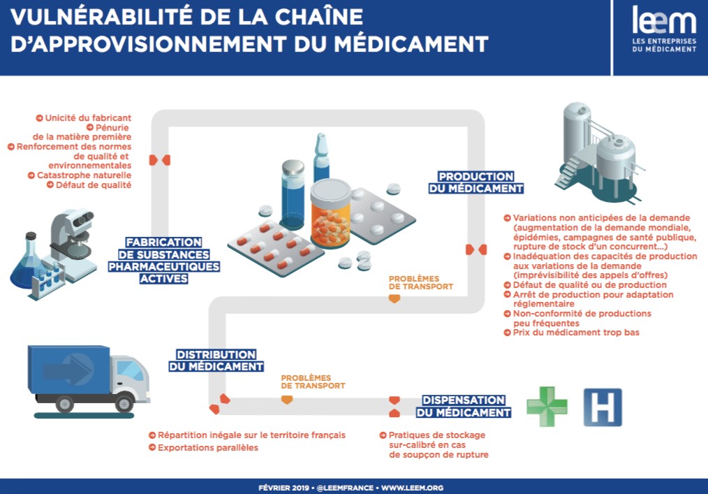 Le Leem souhaite ainsi favoriser la localisation en Europe des sites de production de matières premières actives (60 à 80% sont actuellement fabriquées hors Europe) et des MISS.